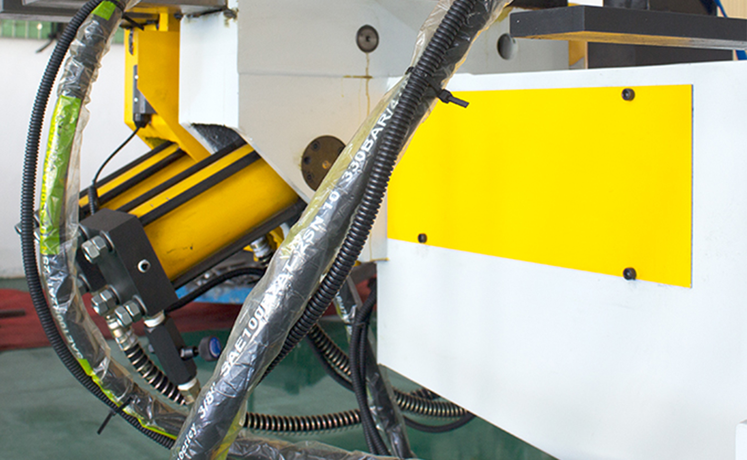 Ось гибки приводится в движение цилиндром, а оси подачи и вращения — ручными, что обеспечивает гибкость и простоту эксплуатации.