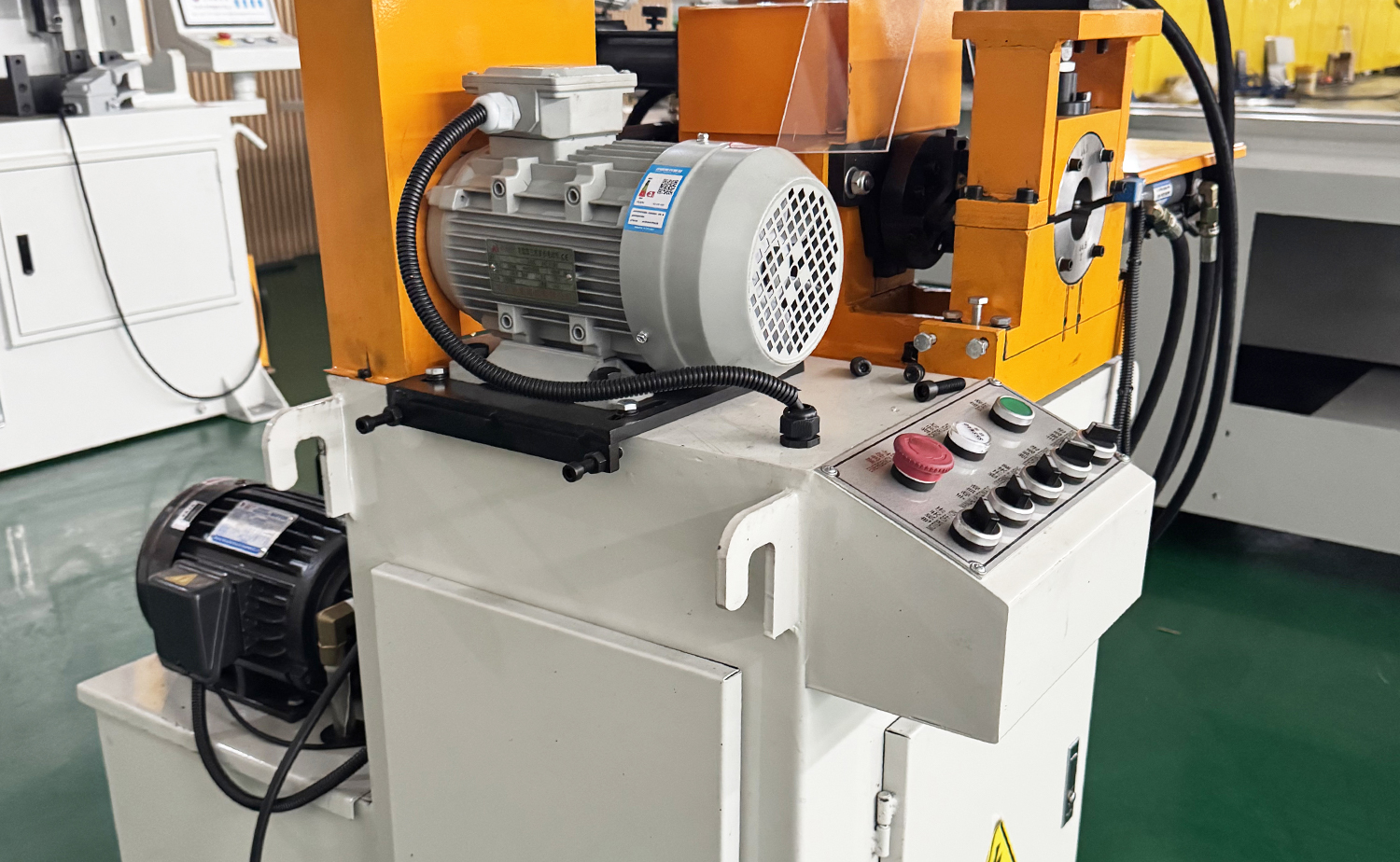 1.Эта полуавтоматическая машина оснащена ручной подачей и автоматическим снятием фаски, а для эффективной работы она оснащена гидравлической системой.