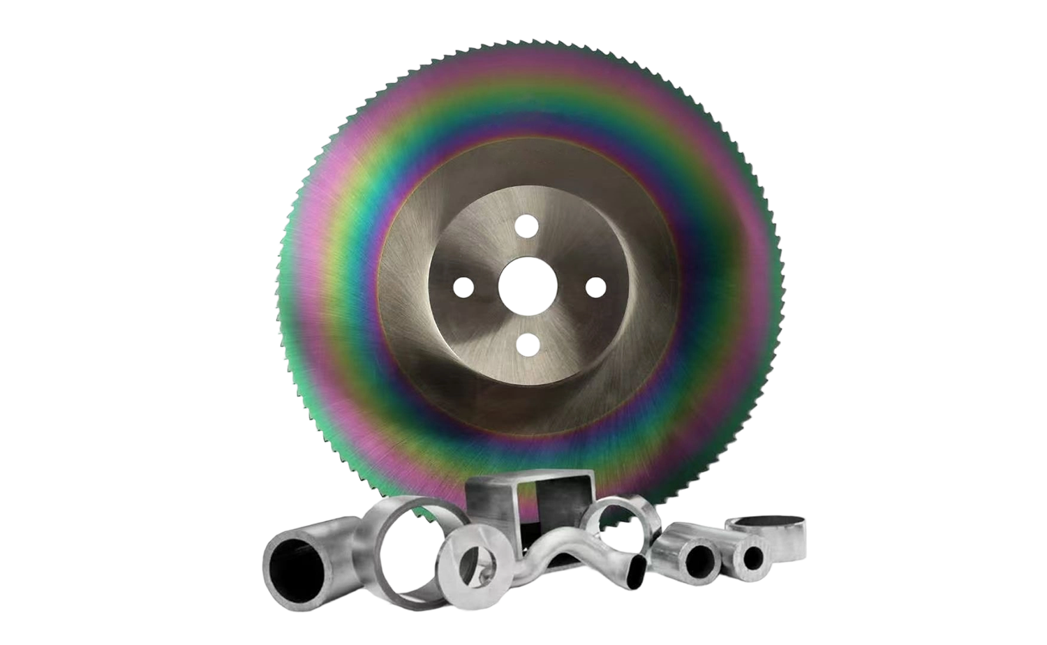 TiAlN (нитрид титана и алюминия) — новое композитное износостойкое покрытие, характеризующееся высокой твердостью, превосходной стойкостью к высоким температурам, превосходной термической стабильностью и прочной адгезией. Он особенно подходит для резки высокопрочных материалов, таких как нержавеющая сталь и другие высокопрочные стали, а также толстостенных труб и твердых заготовок. Кроме того, благодаря исключительной термостойкости и низкой теплопроводности пильные полотна с покрытием TiAlN идеально подходят для сухой резки и пиления на лету.